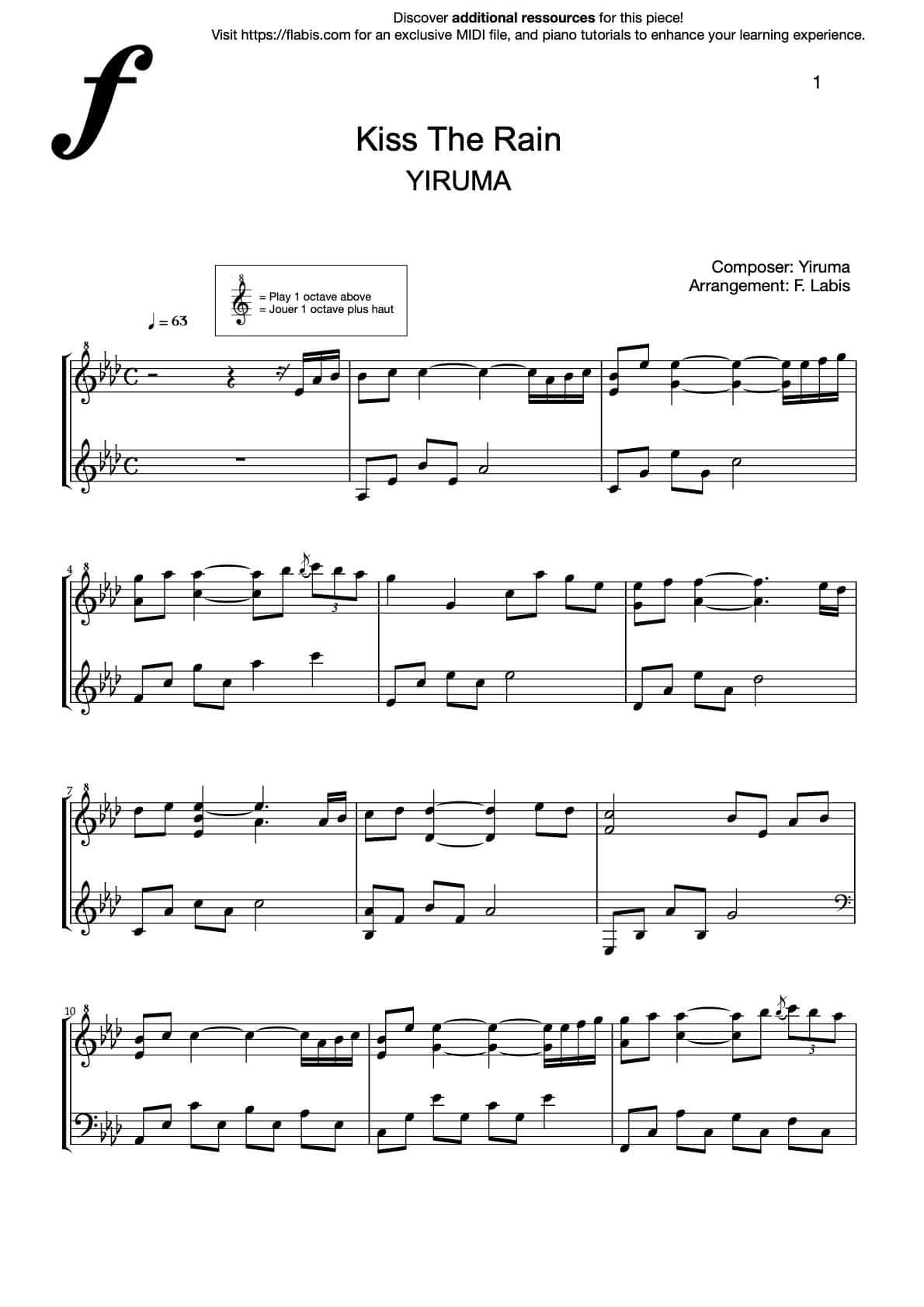 I've just released the piano sheet music for Kiss the Rain - Original Version by YIRUMA.