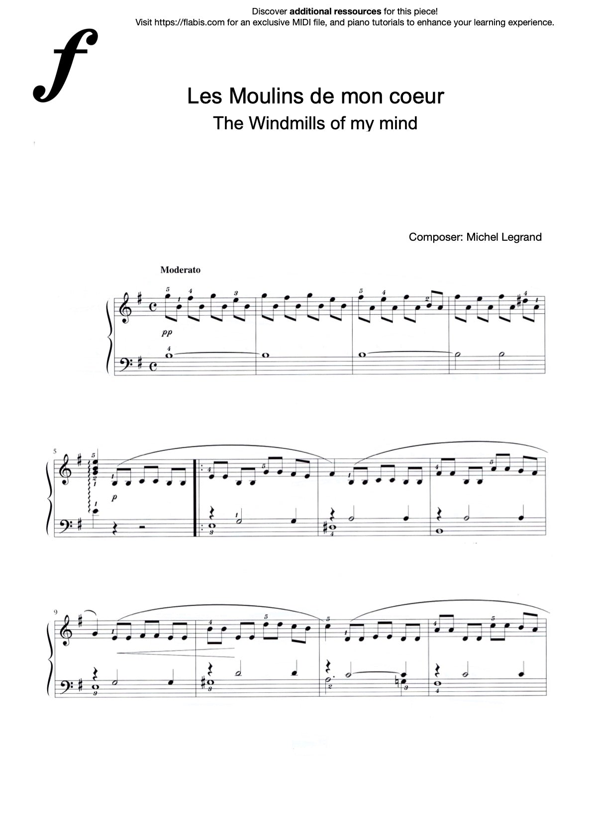 I've just released the piano sheet music for The Windmills of your Mind (From The Thomas Crown Affair) by MICHEL LEGRAND.